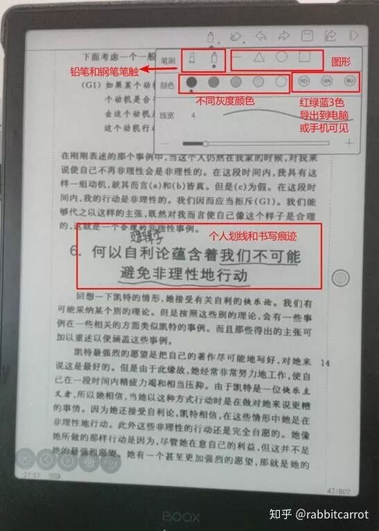 看圖可見,有多種色度和多種顏色線條,滿足多種標注需要。在只有黑白顯示的墨水屏上,這樣的設計很貼心。